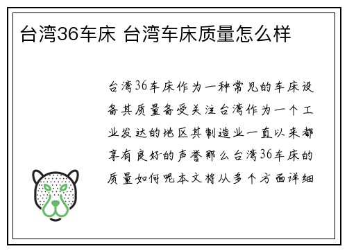 台湾36车床作为一种常见的车床设备,其质量备受关注。台湾作为一个工业发达的地区,其制造业一直以来都享有良好的声誉。那么,台湾36车床的质量如何呢?本文将从多个方面详细阐述台湾36车床的质量,以满足读者的需求。